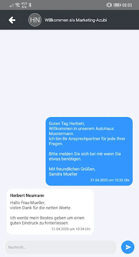 The DealerNet employee app is the ideal in-house communication and information tool for car dealerships and offers a timeline in which articles or photos and images can be published, evaluated and commented on in general or in different groups. In addition, the employees have the option of communicating in a company-compatible manner using an integrated message module and exchanging information directly, quickly and from anywhere.
