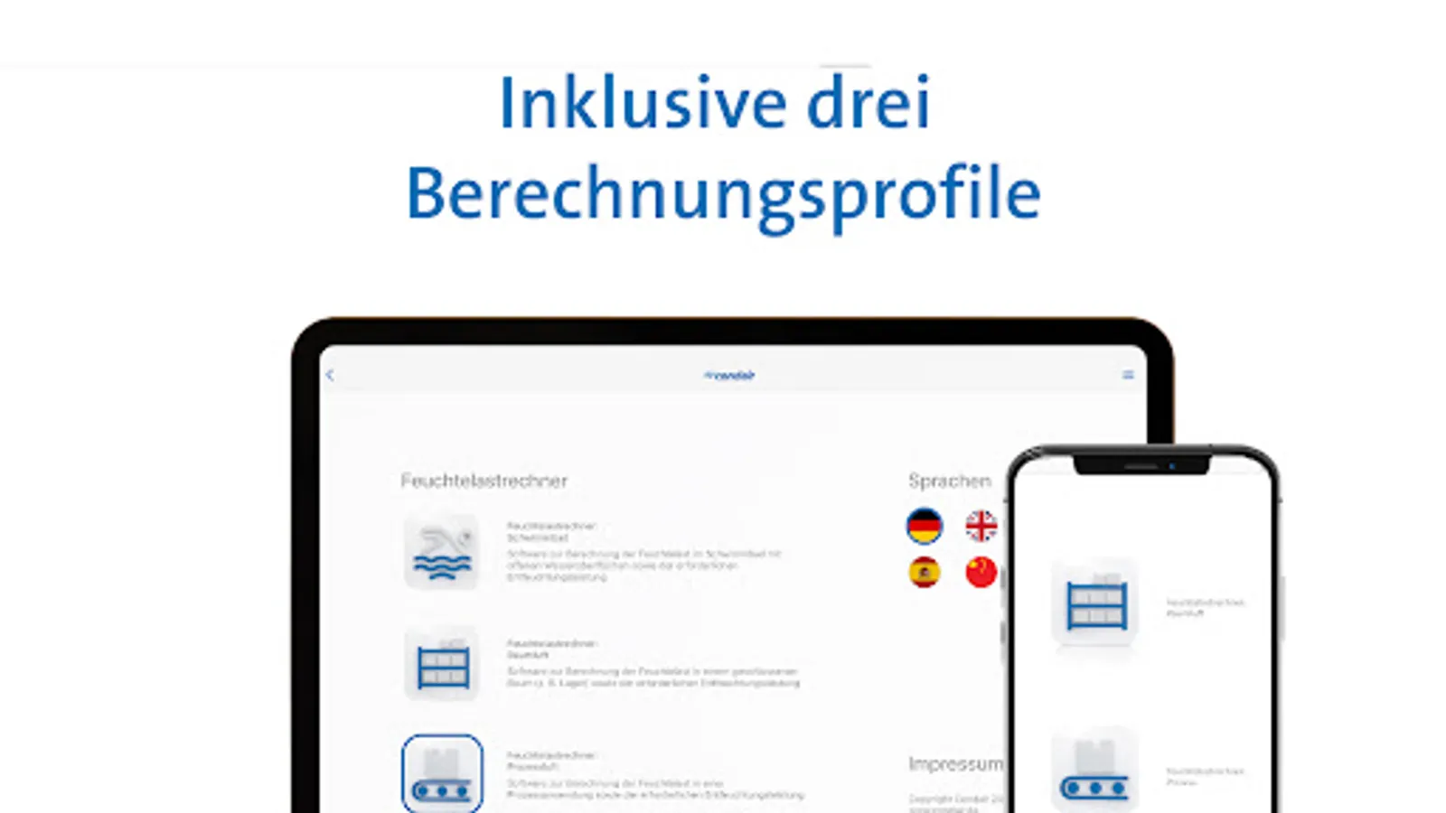 Software for calculating the moisture load in a closed room (e.g. warehouse) and the required dehumidification capacity.