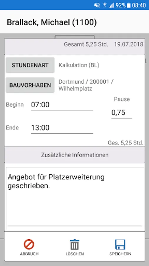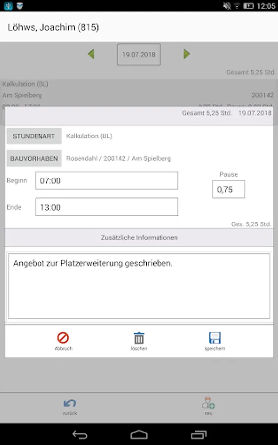 So site managers expenses whatever the relevant project tasks are correctly allocated already at the construction sites, site manager with the app now have the opportunity to record their hours and activities are all on site. In addition to its own tasks allows the app representative take the hours and allowances of the entire column.