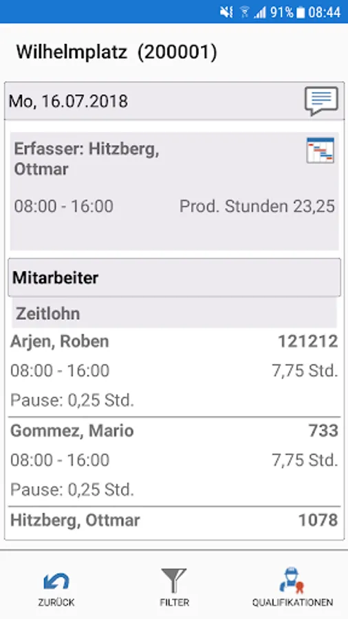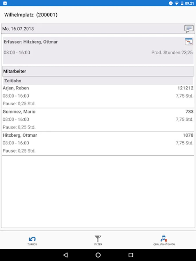 A review and approval of employee hours is possible with the app directly from their mobile devices. The system helps to quickly locate qualified employees for example, work in the security field and brings comfort in Controlling with clear target / actual comparisons: The construction manager can easily check at any time and any place with the app how many hours, for example, per planned project and already run.