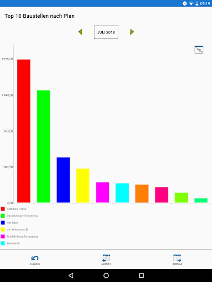 The system provides an overview of employee and equipment costs - either a week, month or year - and shows on demand at current top sites with the most planned and actual hours. At the same vacation and sick leave can be displayed all the teams or the corresponding photo documentation of projects are called. The simple assignment of photos including categorization spot ensures high time savings since no elaborate reworking after work on a PC is unnecessary.