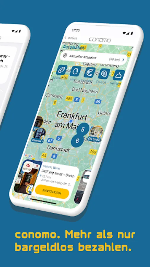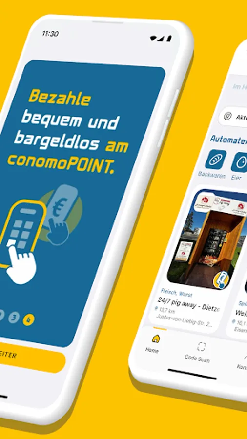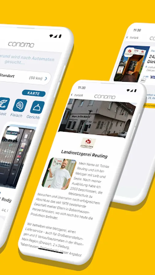 conomo combines regionality and high-tech. Whether it's snacks, drinks, sausage, coffee or baked goods - you'll always find what you're looking for with the conomo app. Throughout Germany. Find out about your area, the regional producers and their products or let yourself be surprised by offers or discount campaigns in the "Deals" area. Whether it’s a vending machine, market stall, café, corner shop or vending machine: operation and payment are contactless, so the search for the right coins is over once and for all. Pay via app. Wherever cash was needed in the past.