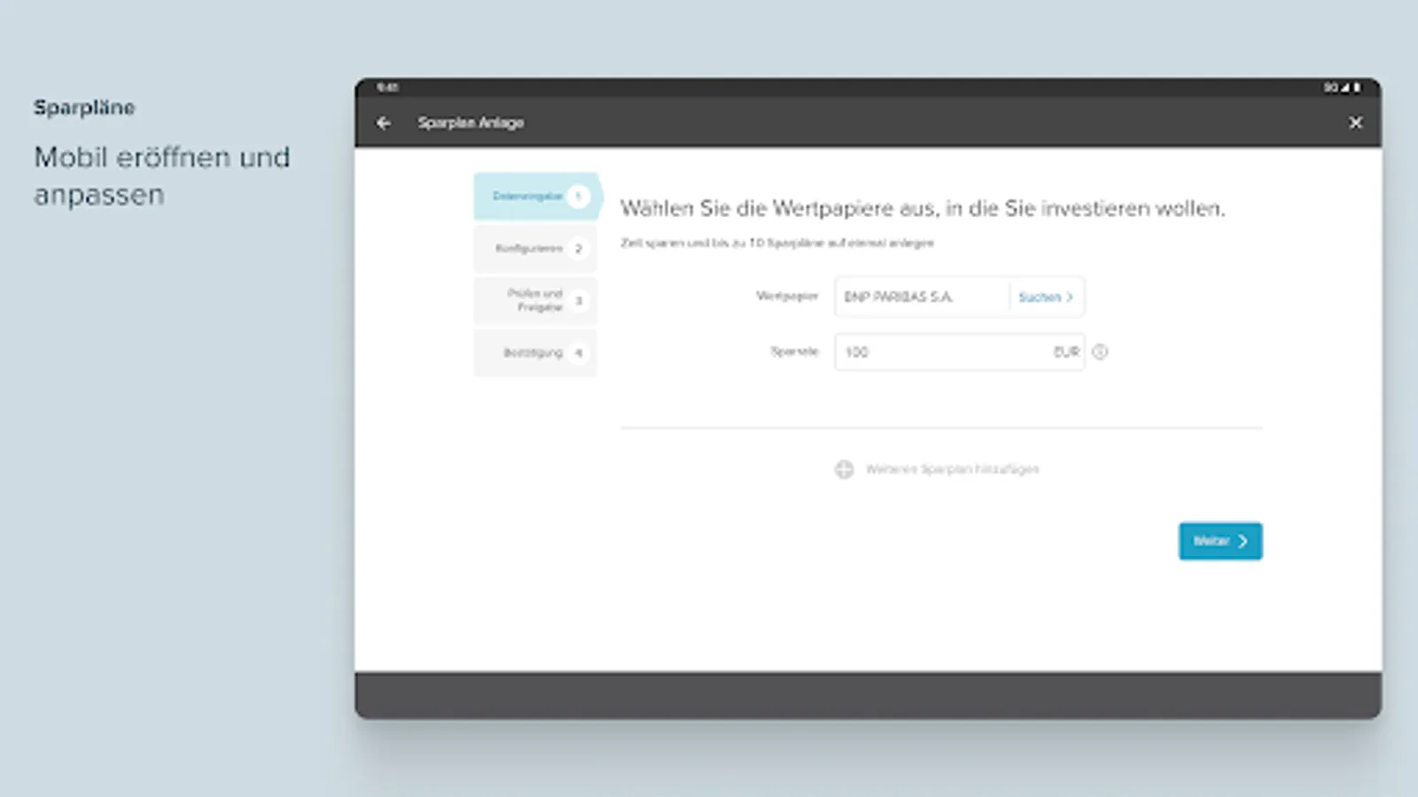 Create savings plans for longer investments in the app, manage them and track the performance at any time.