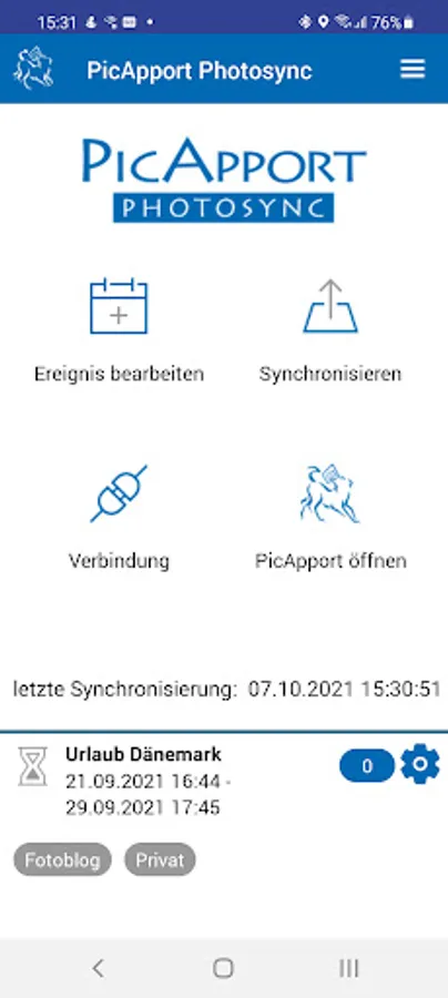- The PicApport page can be called up directly via the sync app. The login data are automatically taken from the connection settings of the sync app.