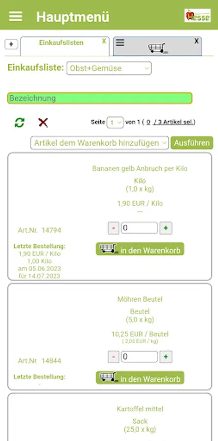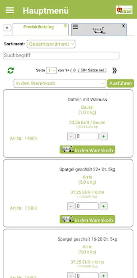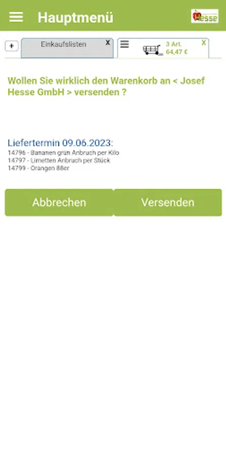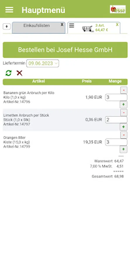 Complete your orders conveniently with a mobile device. The app gives you the option of filling the shopping cart with the desired items and sending them directly to the Josef Hesse company.
