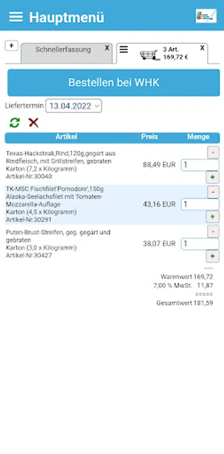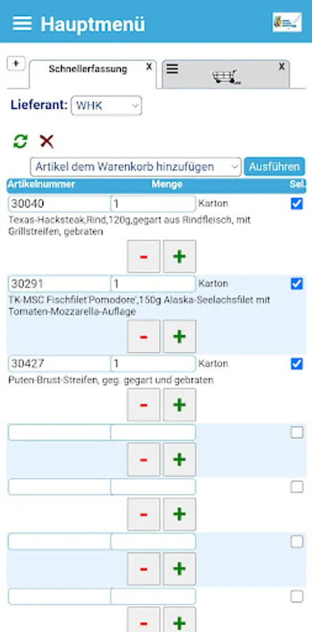As a WHK customer, you can use this app to place your online order using a mobile device. Use the filter options to find the items you need for your customers and dining guests. Create individual shopping lists for quick, routine ordering. To do this, simply log in with your known access data.