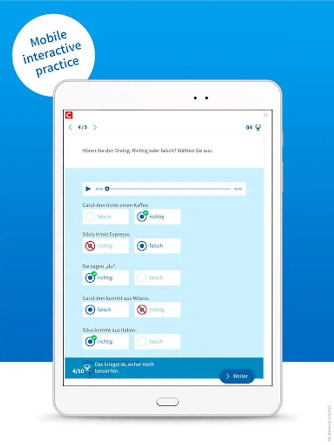 The PagePlayer app is available for selected textbooks in adult education and vocational education. The list of textbooks and further information can be found on www.cornelsen.de/pageplayer.