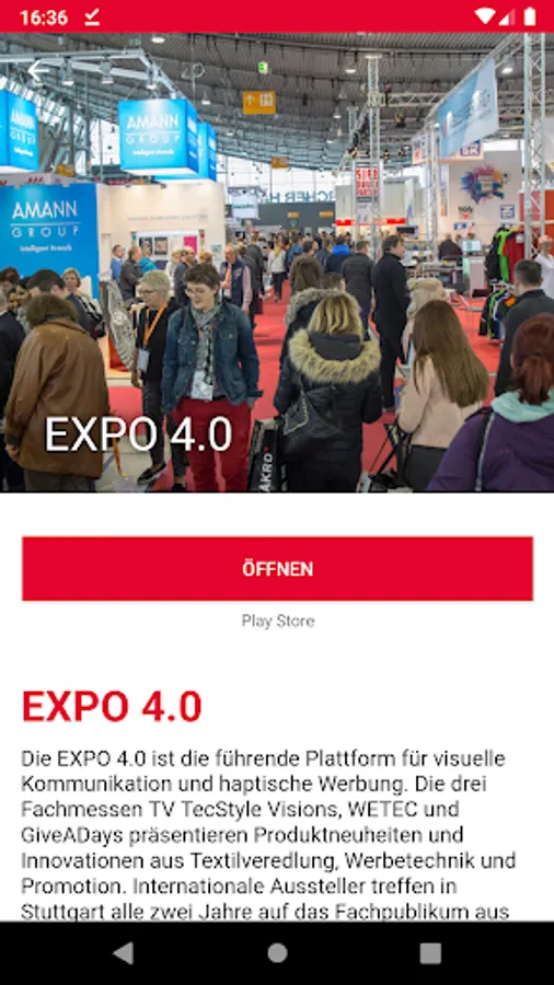 Plan and organise your visit to Messe Stuttgart with the Messe Stuttgart app. Our multi-event app gives you access to all Landesmesse Stuttgart GmbH events. Details about the respective trade fair, exhibitor lists and congress programmes are available in advance. Add your favourites to the watchlist and be reminded of important appointments. Dynamic hall and site maps will additionally facilitate your orientation. Messages, images and videos on the current event will keep you up to date.