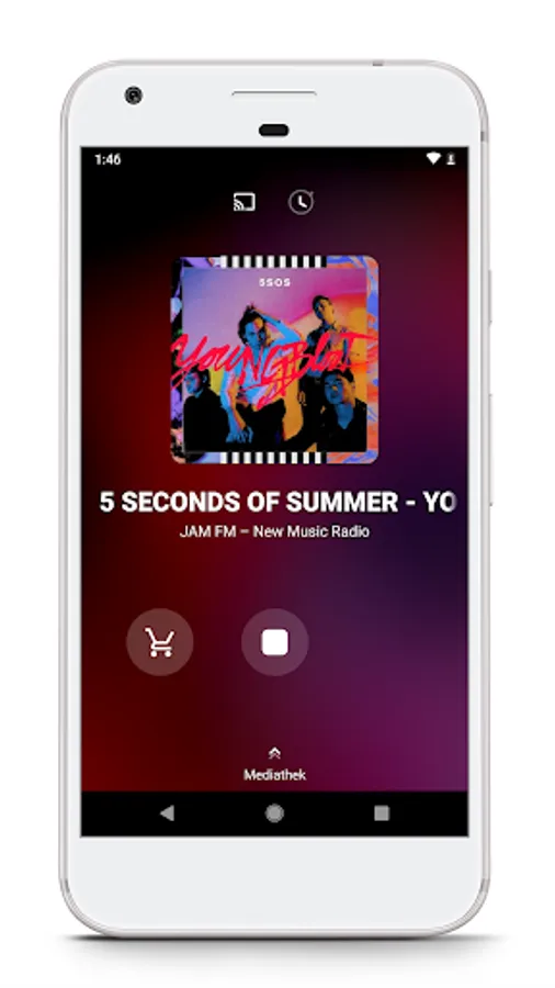 The app is free. There are additional costs if there is no data flatrate. We recommend that you use the JAM FM app over a Wi-Fi connection because the app consumes a lot of data when you listen to a stream or watch a video.