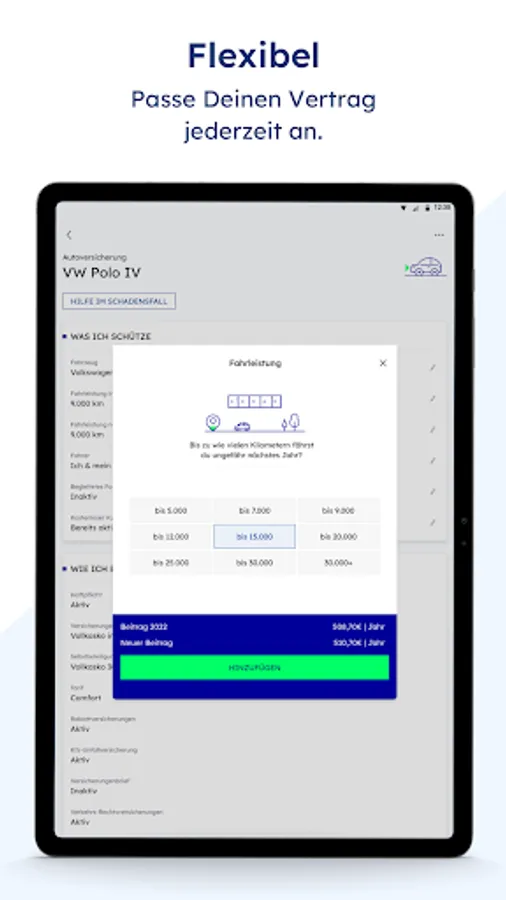 Are you planning a longer road trip? Easily change the mileage in your contract. Or simply add another person as a driver for free. You need a new car? The app gives you quick access to the money you have saved with us if a major investment is due at short notice. In short: One app – countless possibilities!