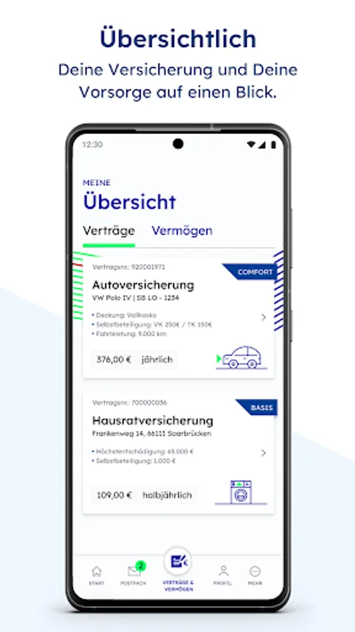 You will receive all important information about your insurance directly in your mailbox. So you are always well informed and also protect the environment because you save a lot of paper. In addition, you no longer have to rummage through files because you can check all important contract details quickly and clearly.