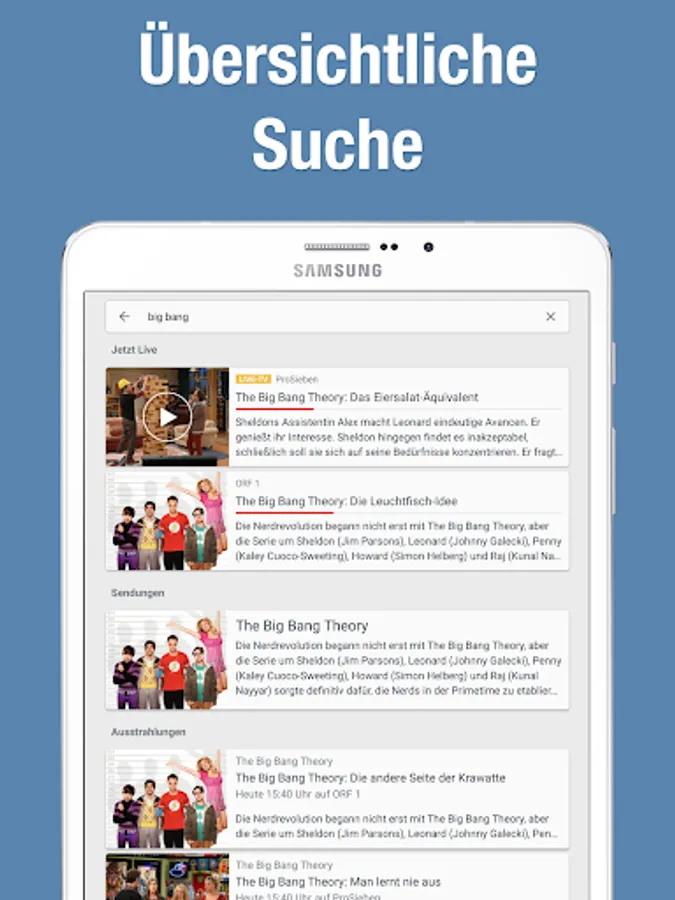 • Find your live TV show or upcoming broadcast even faster with the search