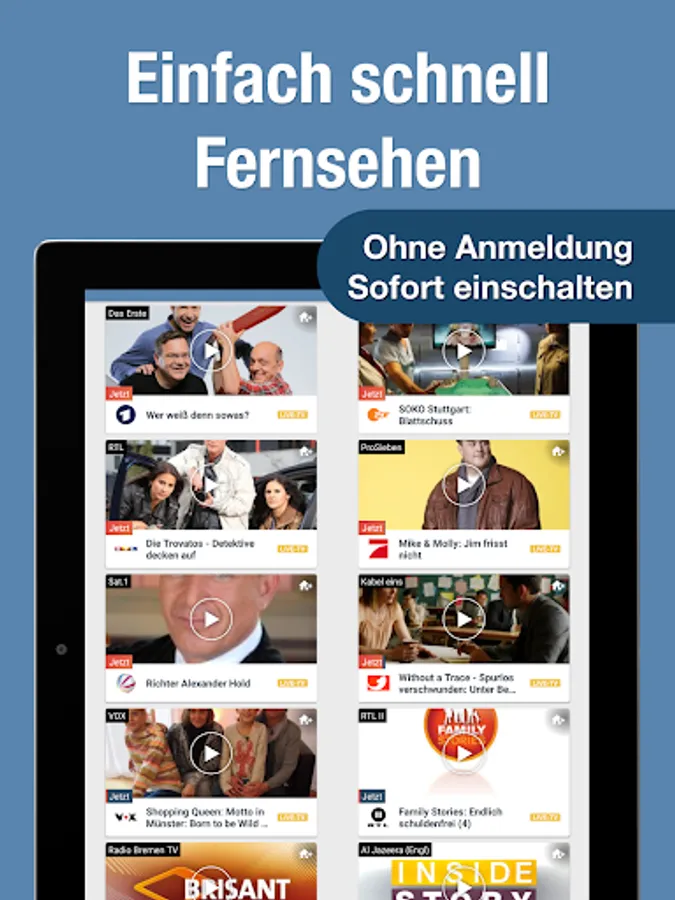 • Uncomplicated live television on the web at: https://TV.de/live