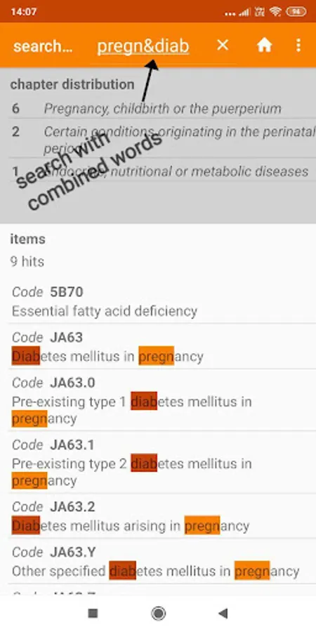 c) Search with combined terms like 'pregnant&diab' to get more specific results.