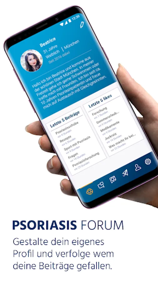 For all of you who suffer from psoriasis, we have developed the first mobile psoriasis community. So you'll never feel alone with the topic again!
