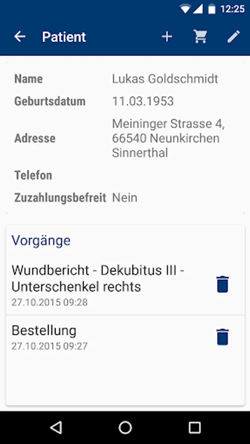 - Vorformulieren and deposit of e-mail texts for sending documentation, orders and patients new plants from the app