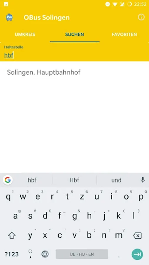 "OBus Solingen" shows the departure times of the arriving trolleybuses and buses of Stadtwerke Solingen (SWS) for all stops in Solingen and the surrounding area.