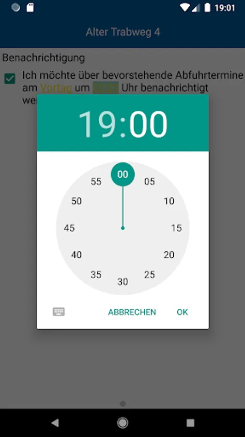 The weekly removal dates of the containers are not shown in the app. This Please ask the Environment Department of the district town of St. Wendel at the following number: 0 68 51809-1922.