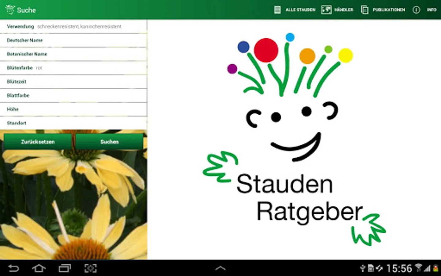 With the perennial Guide App of the perennial forum You can easily find the right plants for your garden. Search offline in over 1400 species and varieties using a variety of search criteria such as Flower color, flowering time, leaf color and plant height. As a special bonus of perennials Guide allows you to search over 20 different use areas and thus shows solutions for theme gardens or specific conditions. The following areas of use are available here: