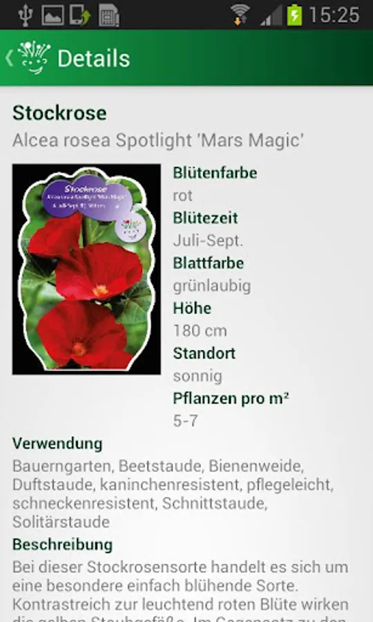 Get introduced to over 1400 species and varieties Pictures and comprehensive information. The app includes for each variety a picture, a formulated variety description and other information such as Flower color, flowering time, plant height and recommended lighting conditions.