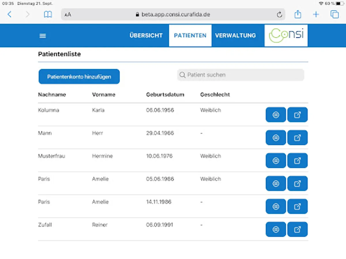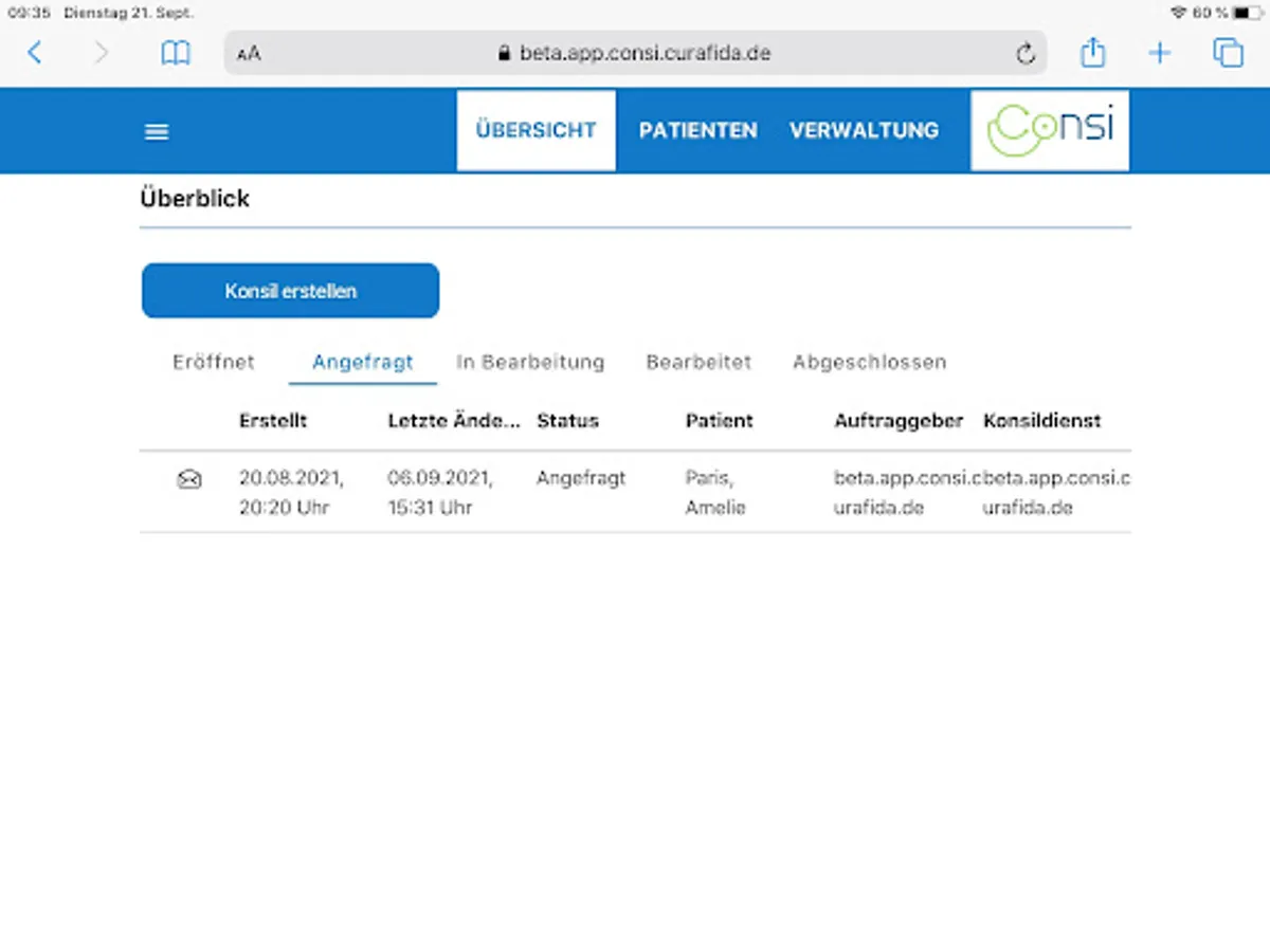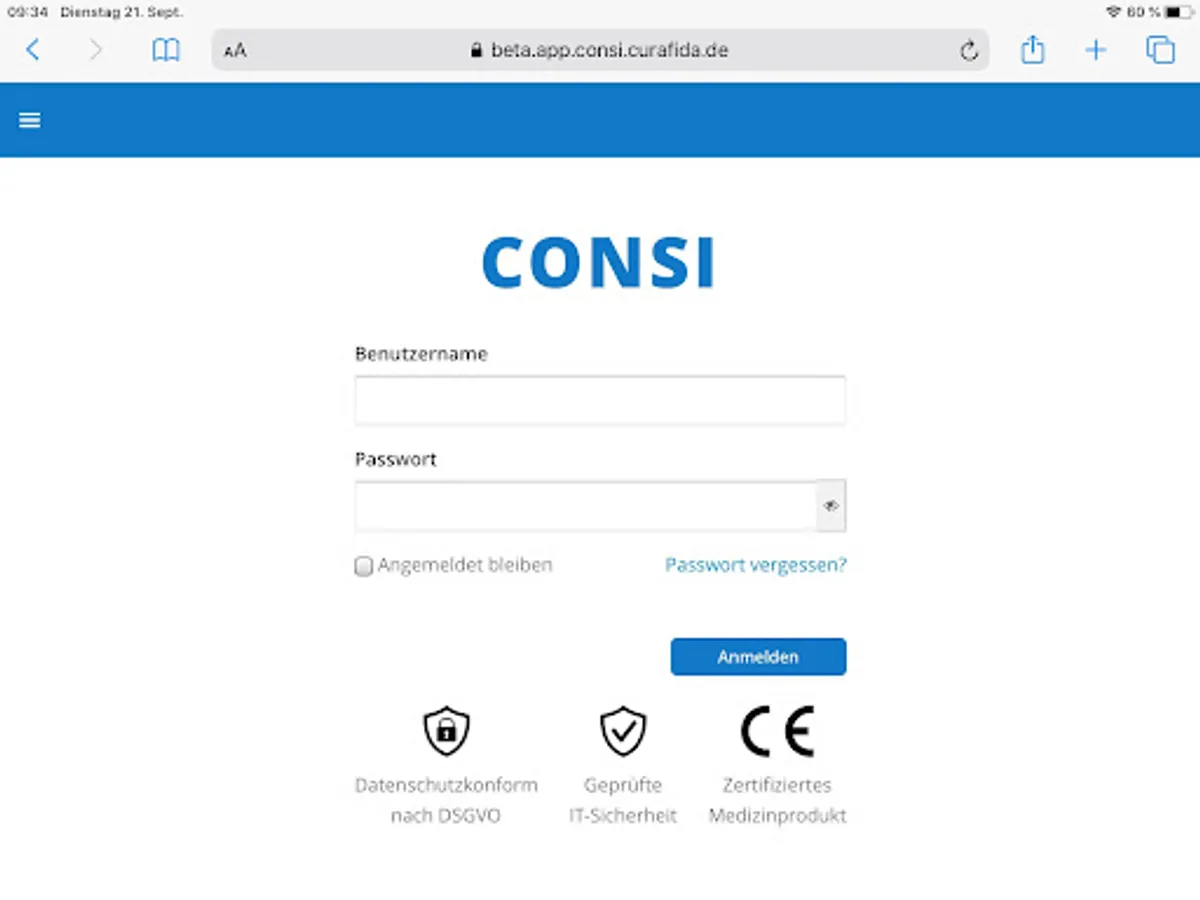 The telemedicine platform Curafida, on which Consi is based, is certified as a CE-certified medical product of class I according to the Medical Device Directive (MDD). Since Consi is data protection compliant according to GDPR and certified as a medical product, it can be used by all institutions.