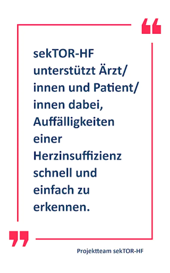 The aim of the sekTOR-HF project is to establish a cross-sector care model for heart failure patients (HF) with a telemedical cooperation network. This network is intended to enable centrally located specialists to continuously monitor HF patients so that they can navigate them in good time and allocate resources.