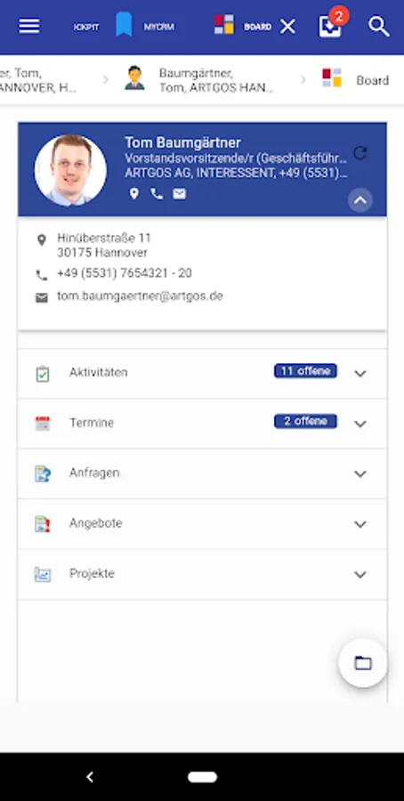 In order to protect the sensitive information in the CRM from unauthorized access, it is retrieved directly from the server and not stored locally. The mobile application is configured via the rich client. Face ID or Touch ID can also be activated as an additional level of security. In order to ensure optimal data security, we are happy to provide you with the app on request.