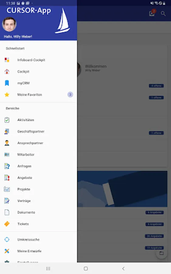 This app for your smartphone or tablet gives you access to your CURSOR CRM solution at all times. You can use the entire myCRM area and call up predefined evaluations and key figures that are always up to date. Business and contact data, employee information, projects, inquiries and activities are available in real time - even offline.