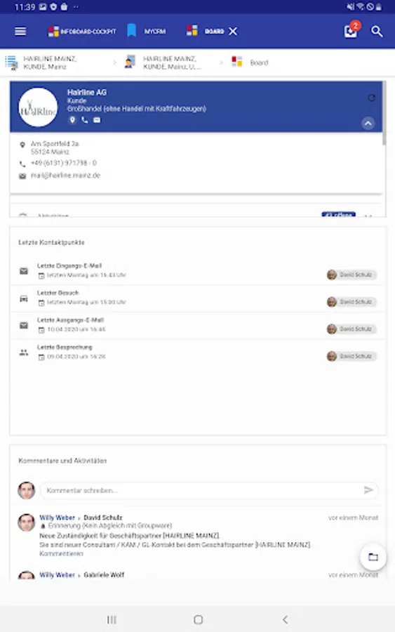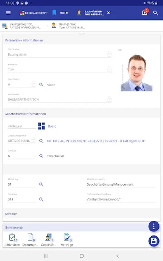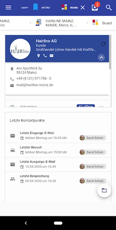 In order to protect the sensitive information in the CRM from unauthorized access, it is retrieved directly from the server and not stored locally. The mobile application is configured via the rich client. Face ID or Touch ID can also be activated as an additional level of security. In order to ensure optimal data security, we are happy to provide you with the app on request.