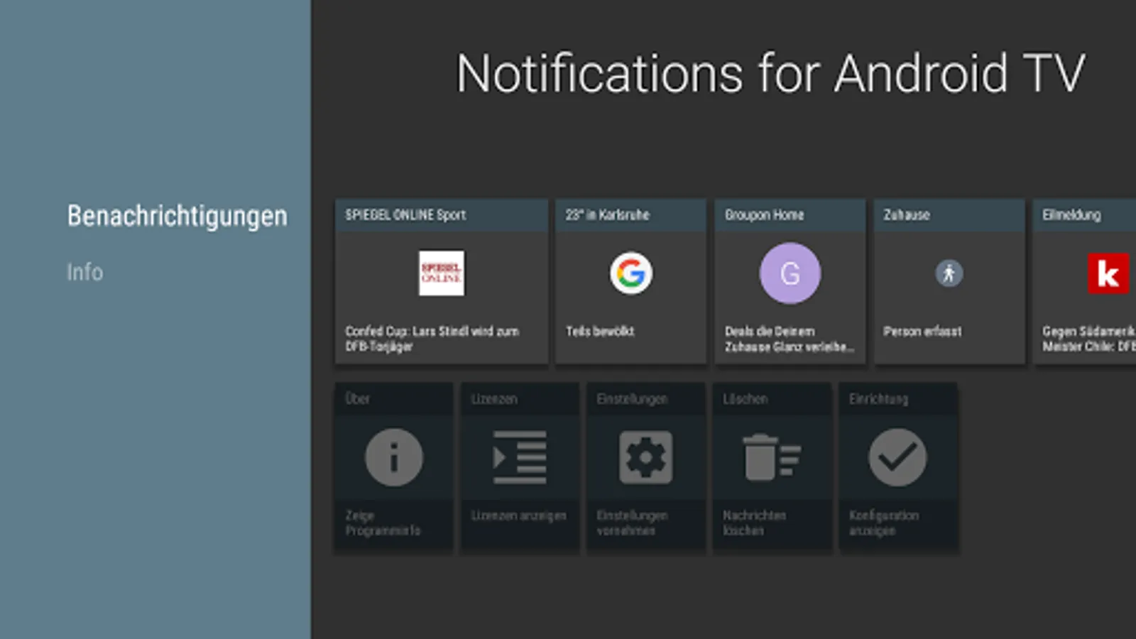 Scroll through every notified message on the Android TV in fullscreen mode. You can change the settings individually for each application.