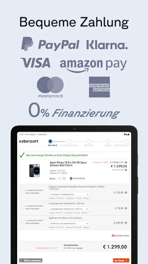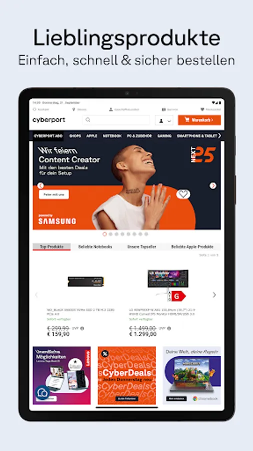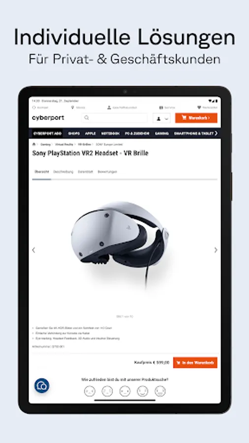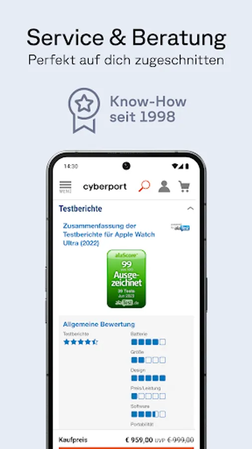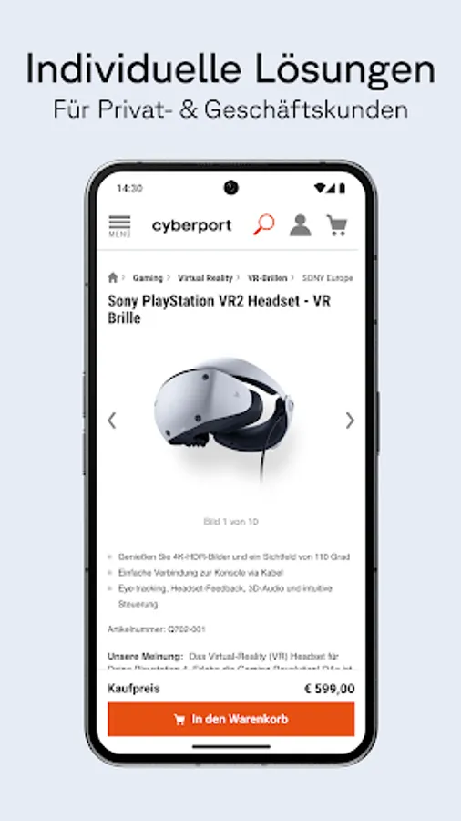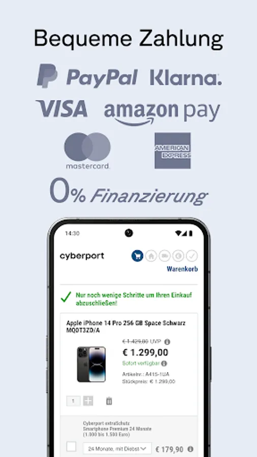 We are constantly expanding and improving the Cyberport app to give you the best possible operation and functionality. We therefore look forward to your feedback via the integrated chat and contact form or via email to info@cyberport.de.