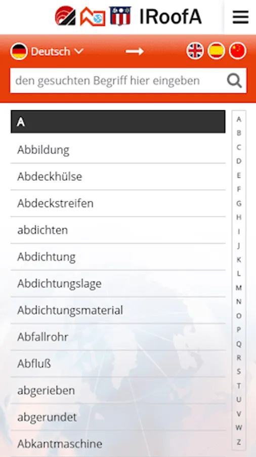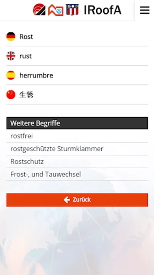 The IRoofA offers a glossary of the roofing and building shell industry terms in four languages. Full offline functionality and convenient search capabilities make it an indispensable companion for any international expert.