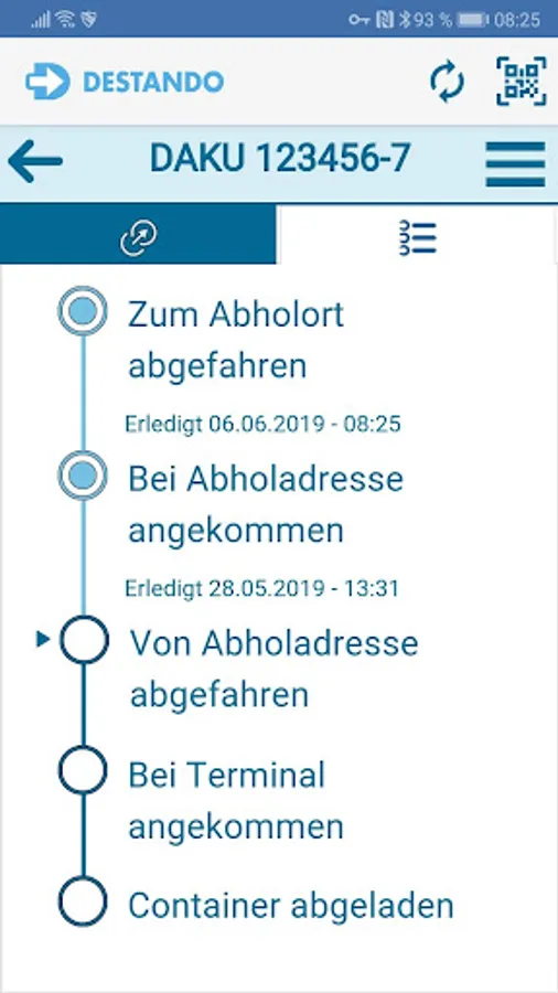 The app has a simple and clear operation for the driver. The next expected status is displayed and needs to be confirmed with just one click. DESTANDO can be used for shipments by sea, in the air or on the road, whether container or general cargo transport. Of course, the application can also be used in combination with DAKOSY applications, such as UNIKAT GE.