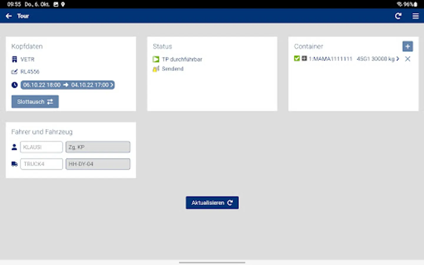With UNIKAT GE Slot you can handle the disposition and coordination processes with the terminals with electronic support. Each transport order is recorded in the UNIKAT GE slot and sent to the terminals. Current status information comes back from the terminals immediately. Information is also provided about current errors in the advance notifications, e.g. incorrect container information or missing exemptions.