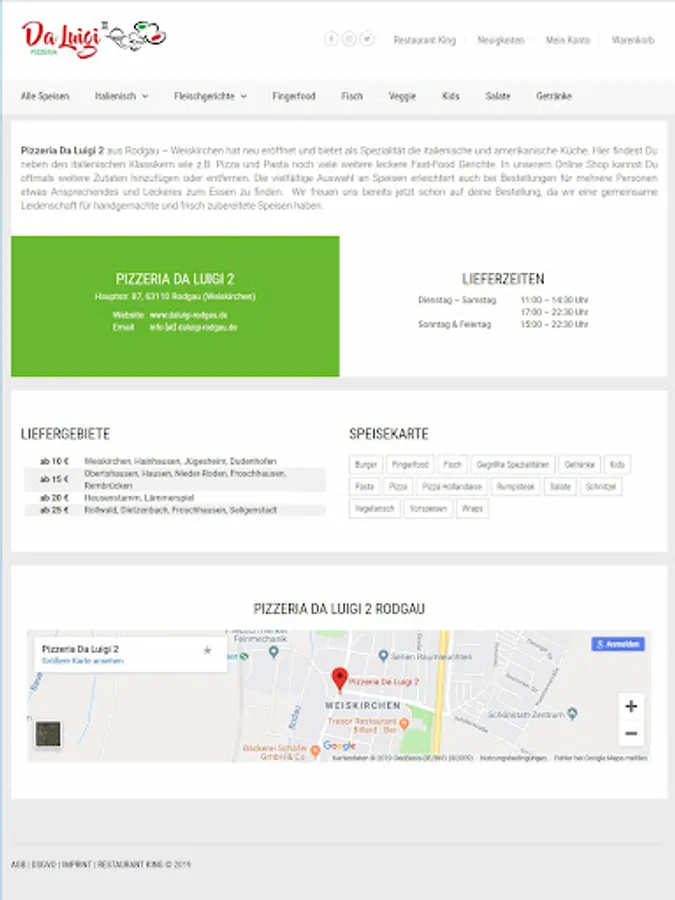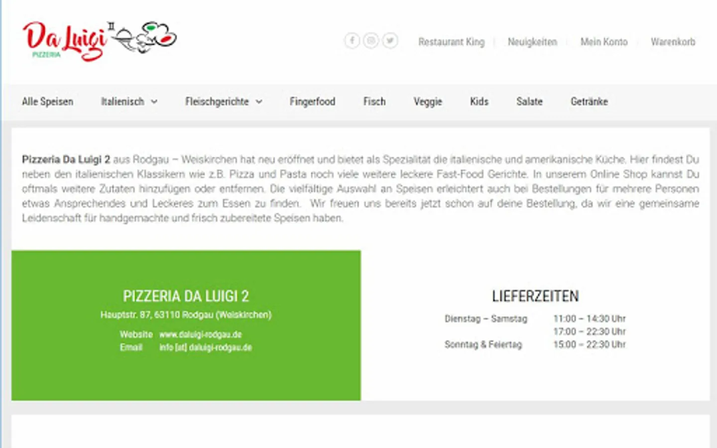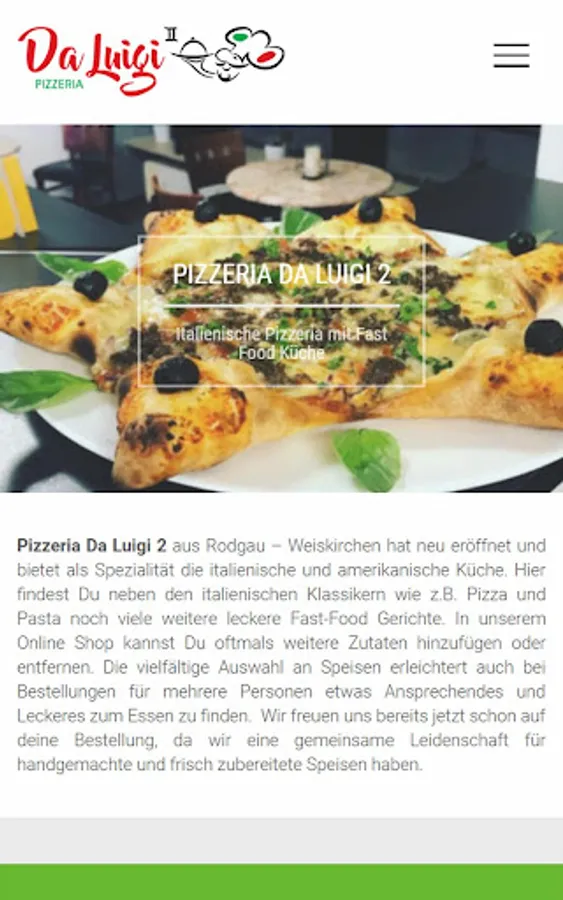 Pizzeria Da Luigi 2 opens its doors in Rodgau (Weiskirchen) and offers Italian and American cuisine as a specialty. Here you will find next to the Italian classics such as Pizza and pasta are many more delicious fast food dishes. In our online shop you can often add or remove other ingredients. The diverse selection of food makes it easier to find something appealing and delicious to eat even when ordering for several people. We are already looking forward to your order as we share a passion for handmade and freshly prepared food.