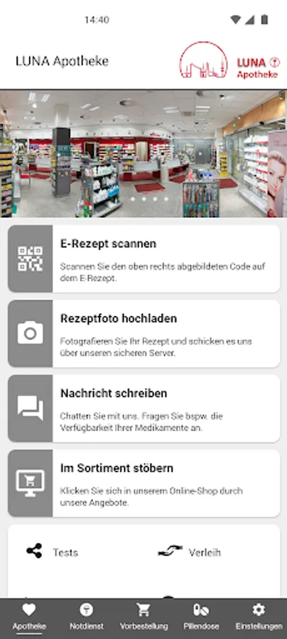 The app of the LUNA pharmacy in 21109 Hamburg.