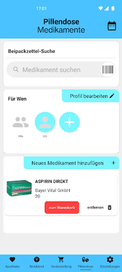 You can easily document your medication and that of your family and store it in the app, save medication intake in the calendar and set intake reminders.