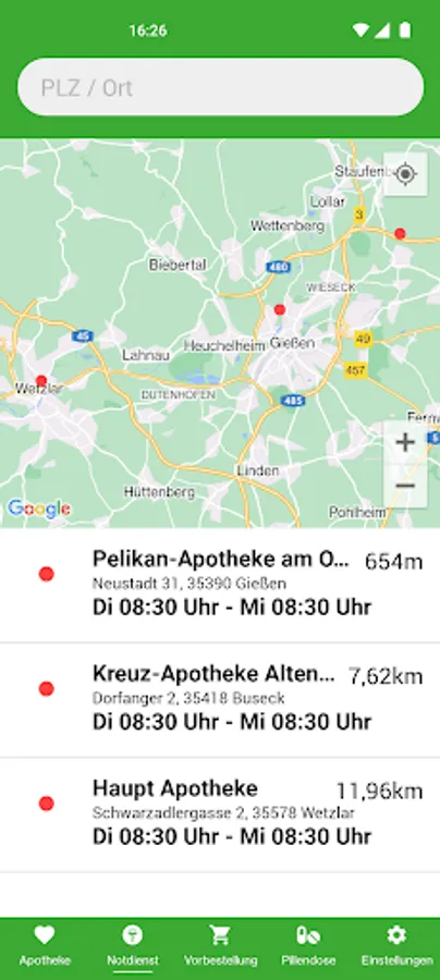 Who's on emergency call tonight? We'll show you in our app. With information on how to get there and contact details for the emergency pharmacy.