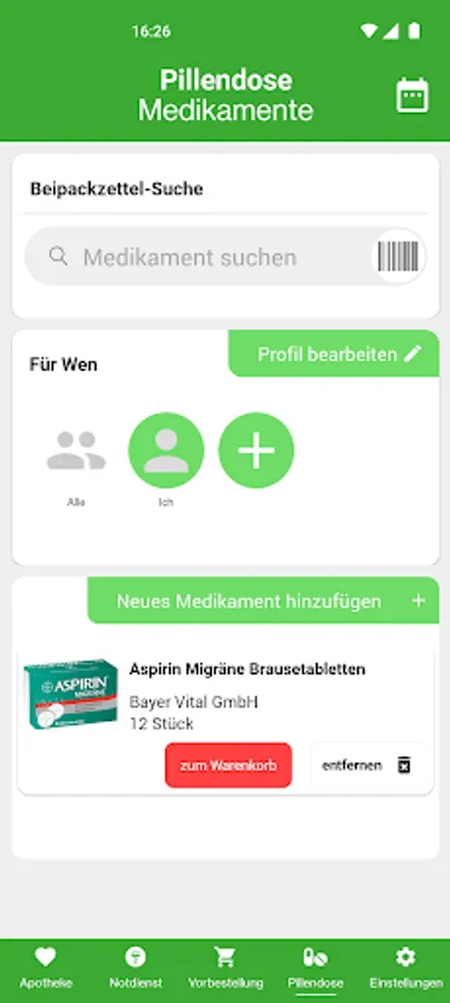 You can easily document your medication and that of your family and store it in the app, save medication intake in the calendar and set intake reminders.