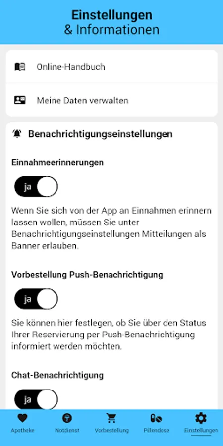 You can easily document your medication and that of your family and store it in the app, save medication intake in the calendar and set intake reminders.