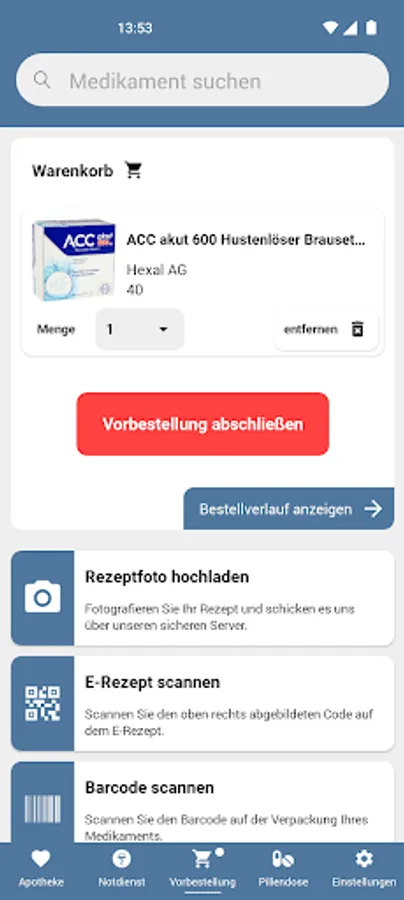 You take a picture of your prescription while you are still at the doctor's and send it to us directly via the secure channel in our app. We will notify you immediately when your medication is ready for collection.