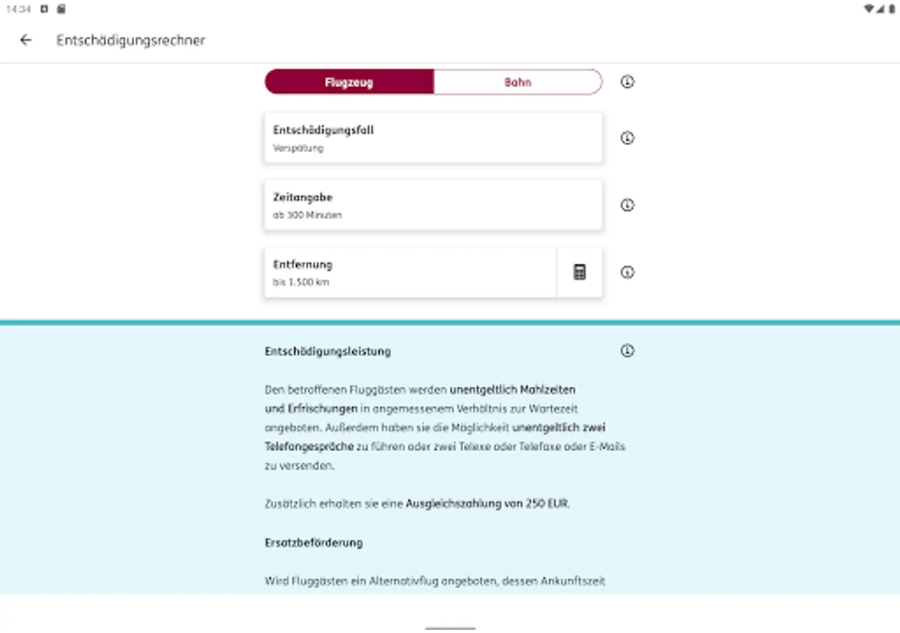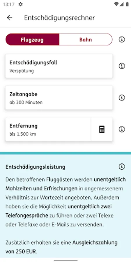 • Compensation calculator for air and rail travel