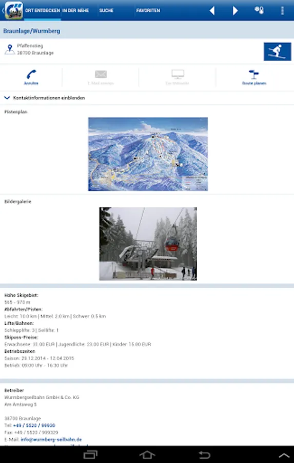 Your perfect companion for the resin is always with you - in your pocket! Check comfortably in the app the weather, you search a cozy place to stay or a good restaurant for lunch time. Instantly see which slopes are open, where you can rent ski equipment you or let you view spa facilities, swimming pools or relevant service information for the Harz. The mobile guide navigates you reliably and relaxed by your holiday in the Harz!