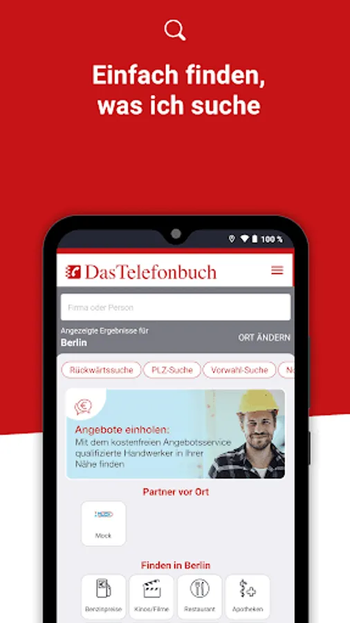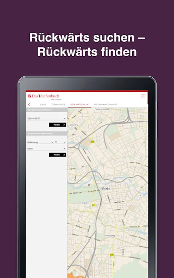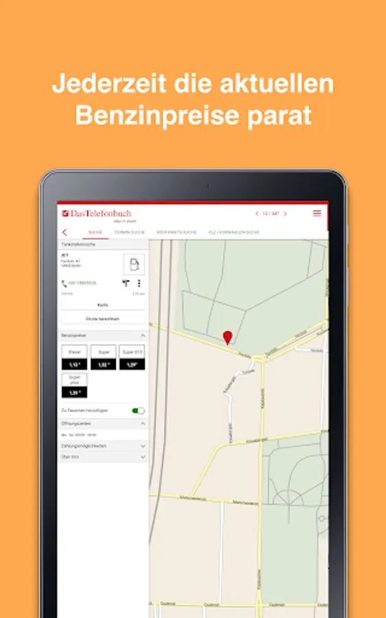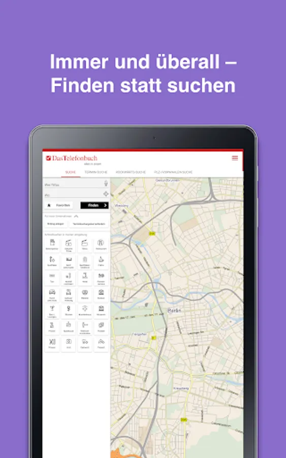 With the app from Das Telefonbuch - the phone directory provider in Germany - you always have everything important from businesses around you and all over Germany ready right at your fingertip.