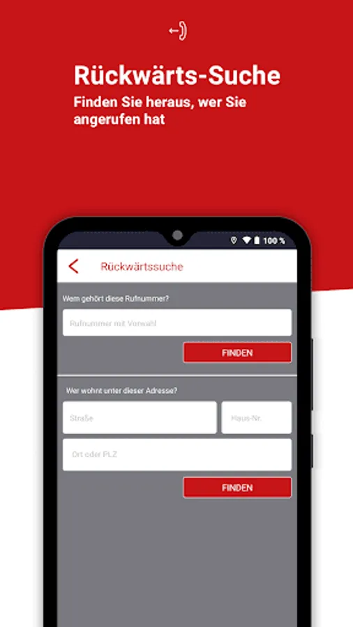 The Das Telefonbuch Android app identifies unknown phone calls and warns you from phone spam like telemarketing calls or phone fraud. When a number unknown to you tries to reach you, the Das Telefonbuch Android app not only warns you against spam callers. If it cannot find the number in its spam database, it searches in the huge phone number directory database of Das Telefobuch to identify the caller. This way, the app not only protects and informs you, it gives you back an easy mind when you answer a call.
