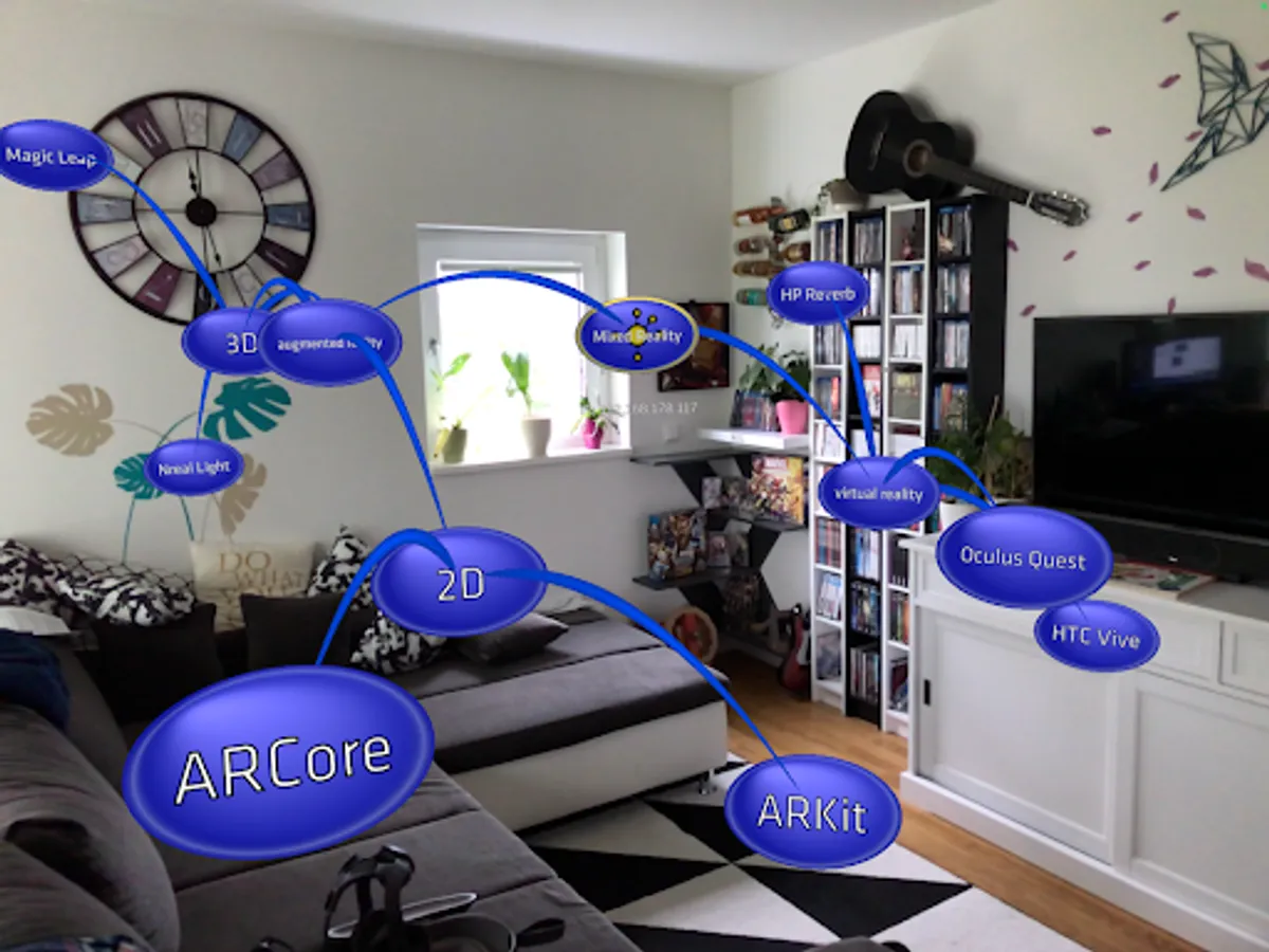 Collaboratively create mindmaps in 3D, anchored in the real world.