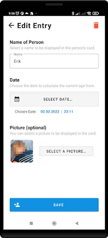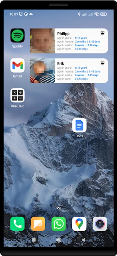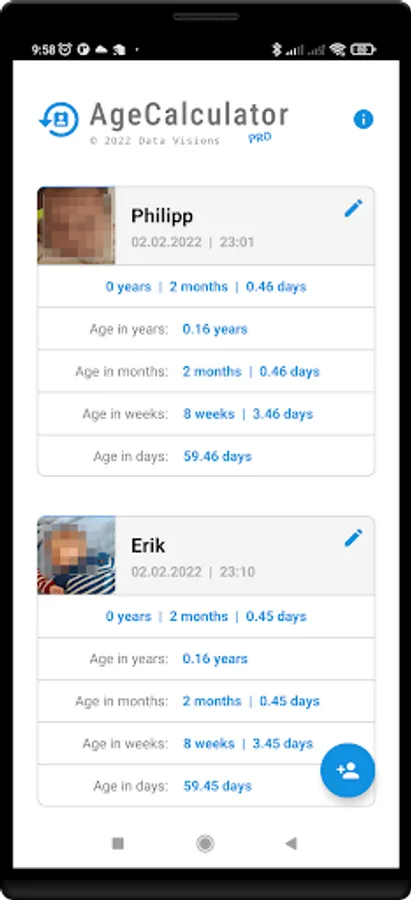 With it you can add any persons or events, of which you want to know the exact age, with two decimal places precision, in either years, months, weeks or days.