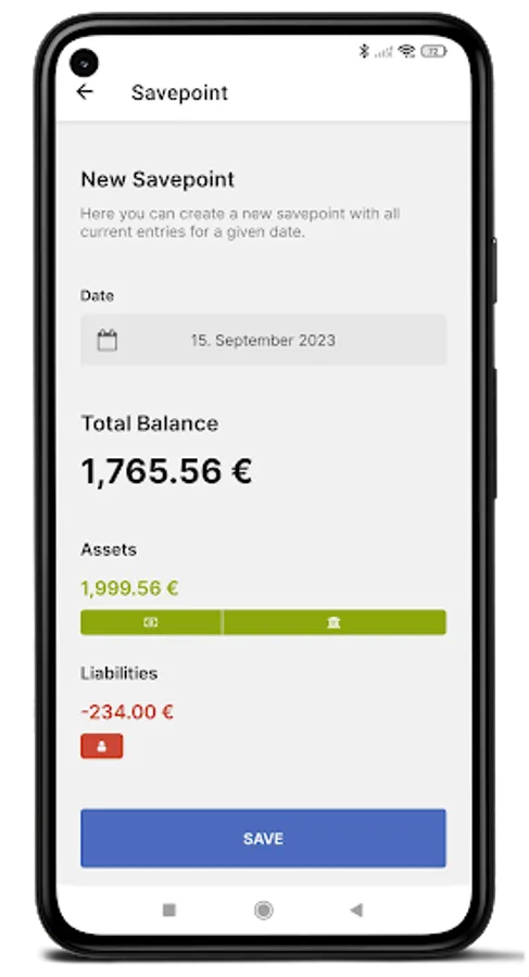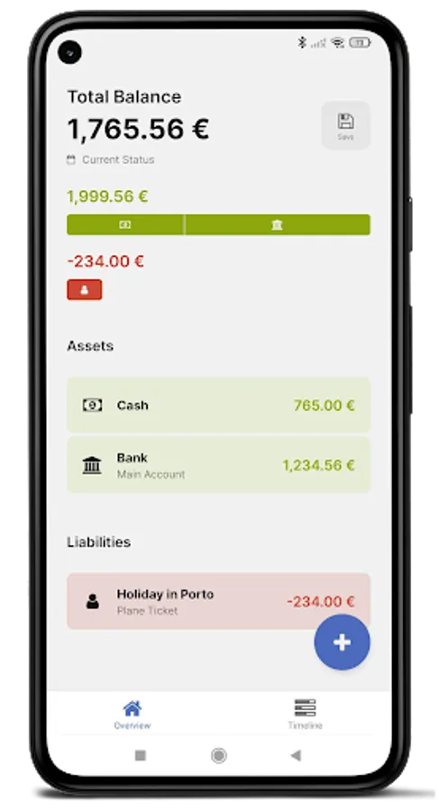 This free and also ad-free app gives you an overview of all your different assets and liabilities. Additionally, you can add save points to store the current status of all values and keep track of your wealth development over time.