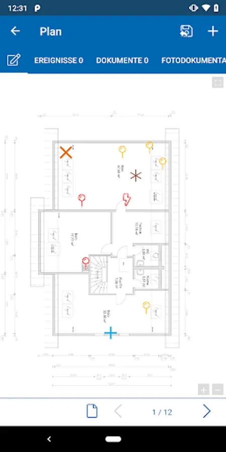 Record events (defects, disruptions, disabilities, remaining services, etc.) directly at the scene and locate them with a pin at the appropriate place in the plan.