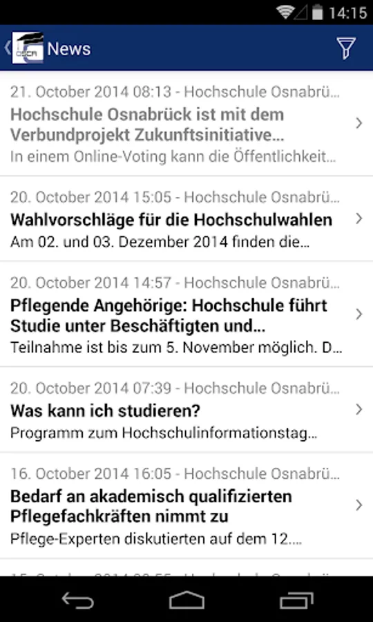 OSCA is the mobile application for the Campus-Management-Software from Datenlotsen Informationssysteme GmbH at the Hochschule Osnabrück.